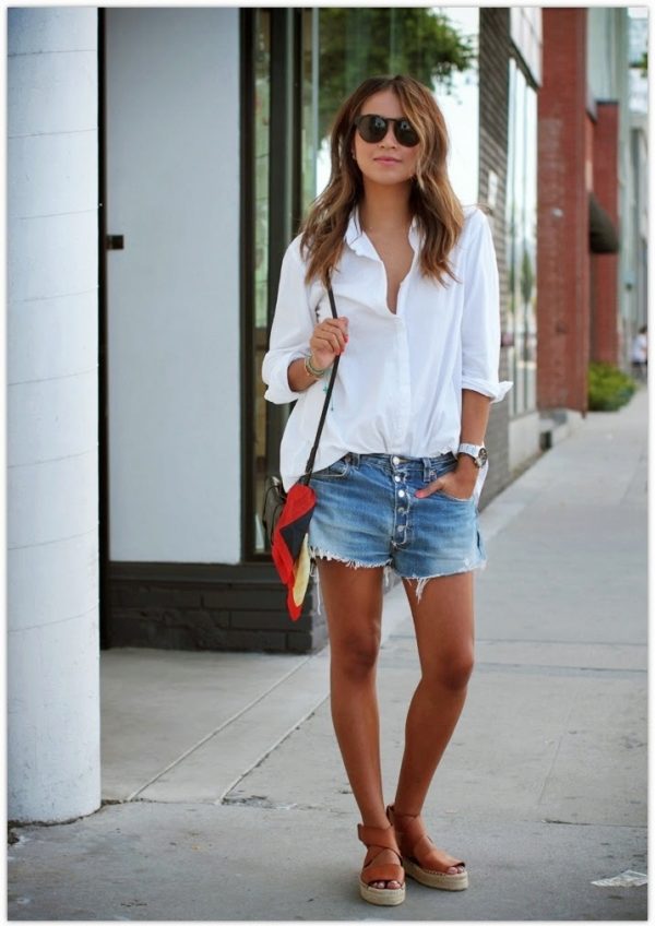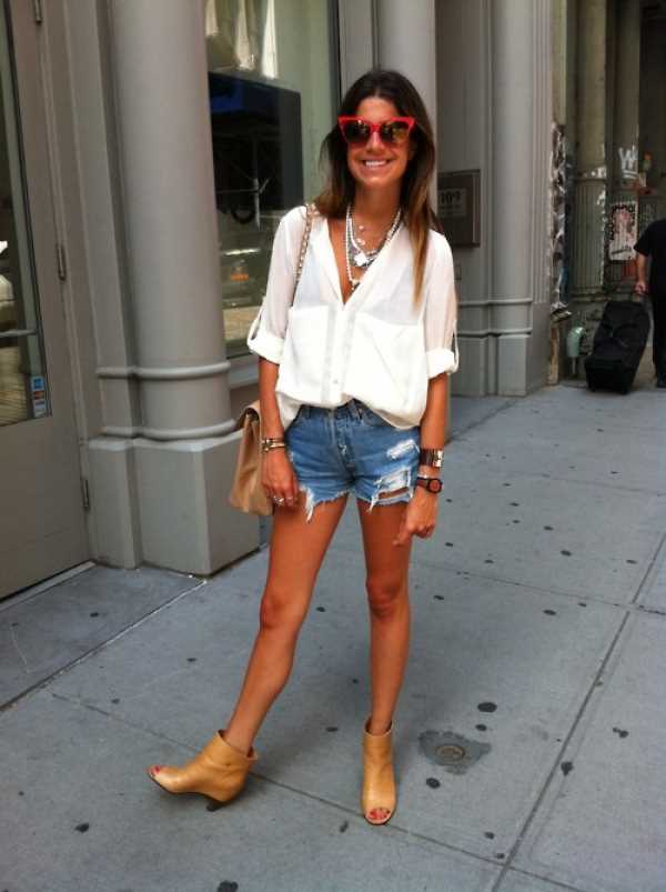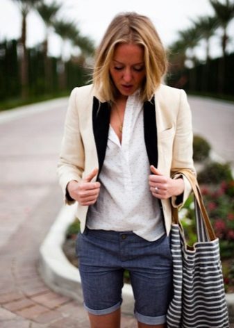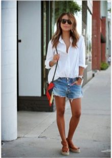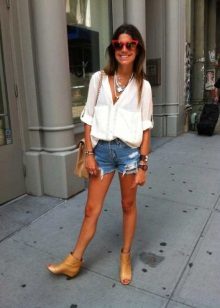 Probably the most urban bow is a combination of a shirt with shorts. Shorts can be denim or fabric. The bottom of a beige or light brown color looks impressive.