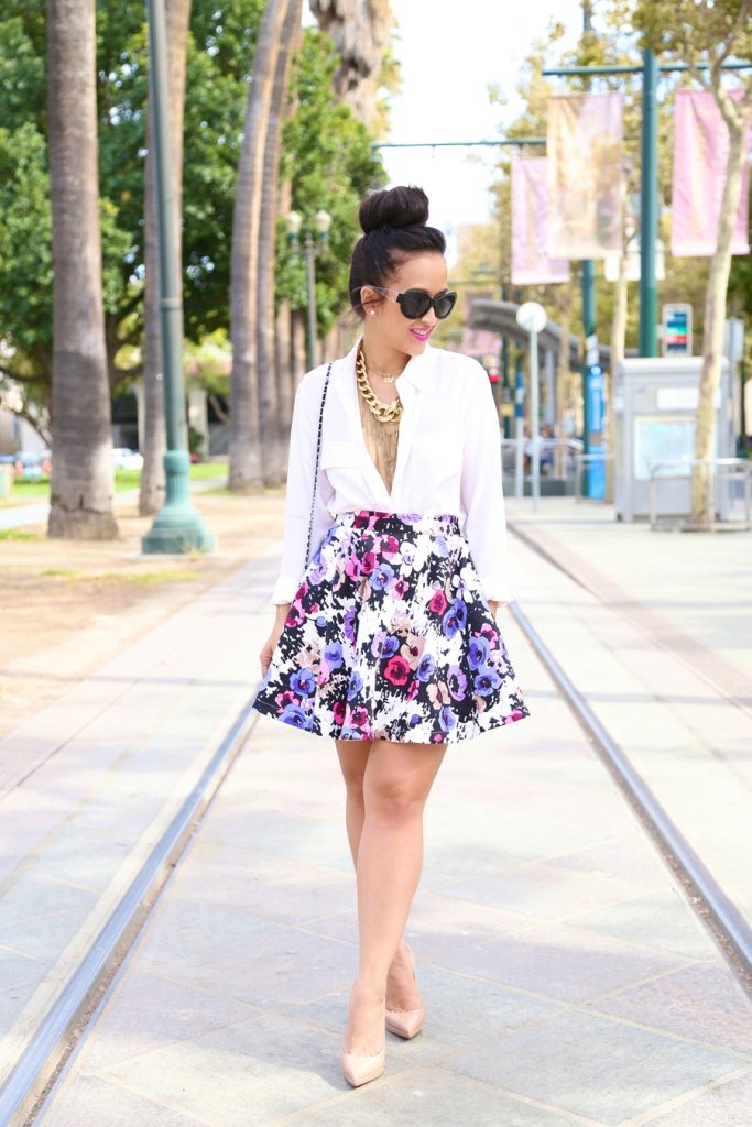 If you want to achieve a romantic look, choose a pastel-colored skirt with a floral print. Emphasis can be made by choosing a skirt with a high waist.