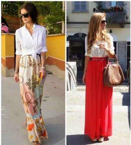 Shirts are perfectly combined with various styles of skirts: mini, maxi, flared, pleated below the knee, pleated skirt and others.