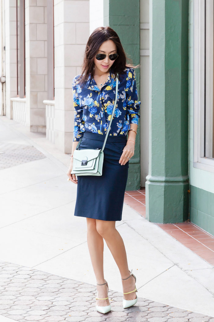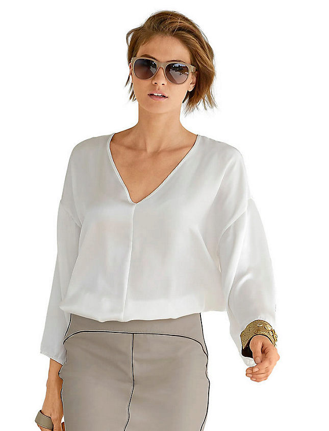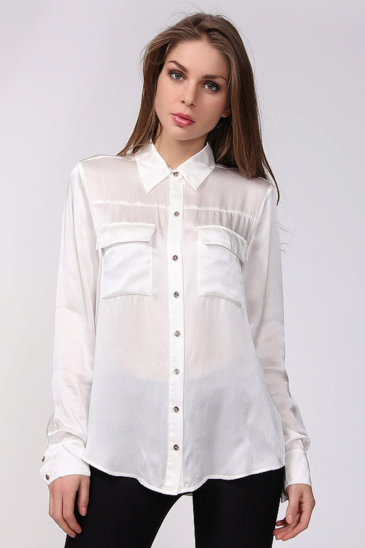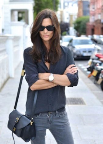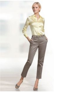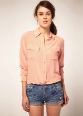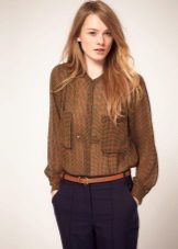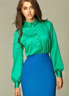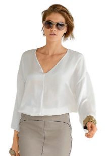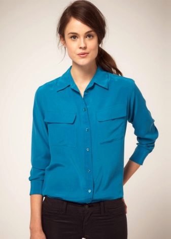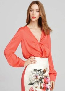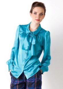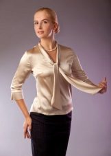 Silk blouse is combined with pants, jeans, skirts, and shorts. The bottom is completely dependent on the overall style of the blouse.