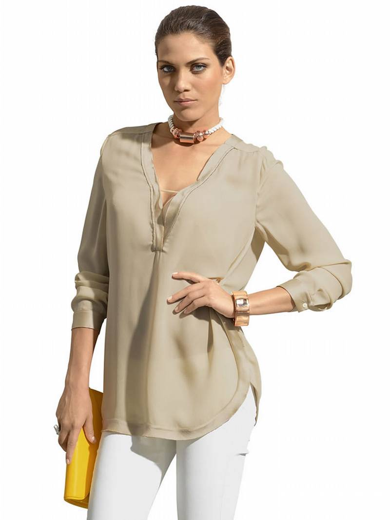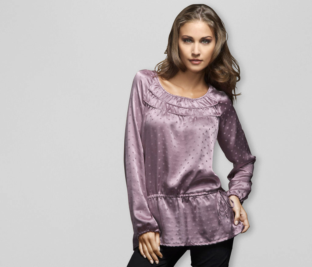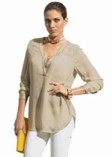 Silk shirts with long sleeves or ¾ look good on fat women. Also, elongated tunics will balance the shape and slightly stretched silhouette. But many of your favorite ruffles and flounces will add extra pounds. It is better not to conduct experiments, to give preference to the classic fitted models.