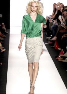 Here and wet silk with its interesting texture. The successful combination of green and gray allows you to fantasize on the bored many office dress code.
