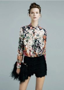 Summer day will be even brighter with a silk blouse with a floral print and light shorts. The image will be finished with sandals or slaps made of genuine leather.