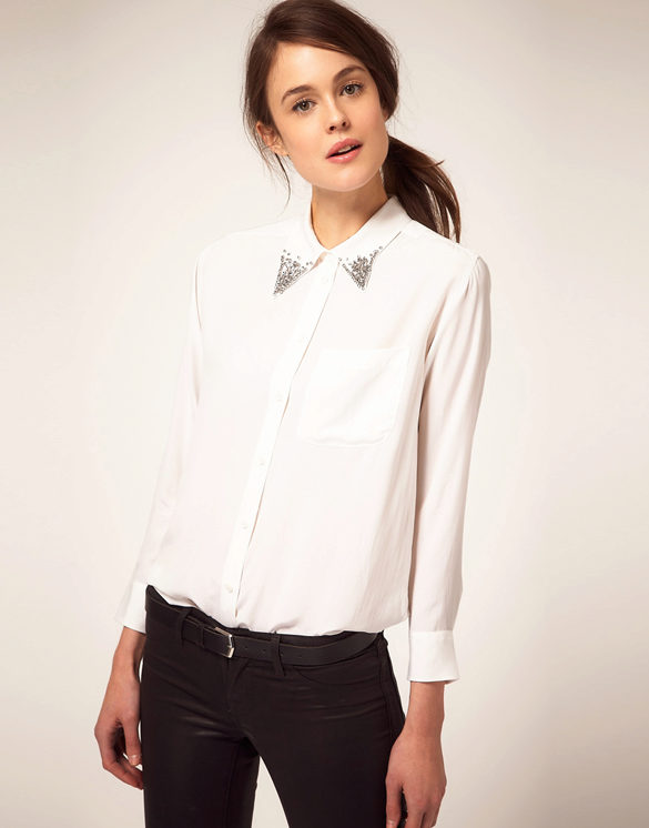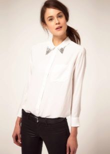 White blouse - a win-win, add solemnity and sophistication. Also combines well with the bottom of any tones.