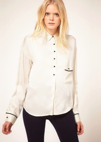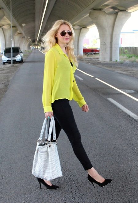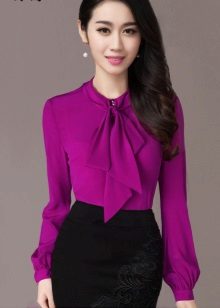 Designers recommend to leave blouses of blue, red, lilac, pink and other bright shades for evening exits or other informal events.
