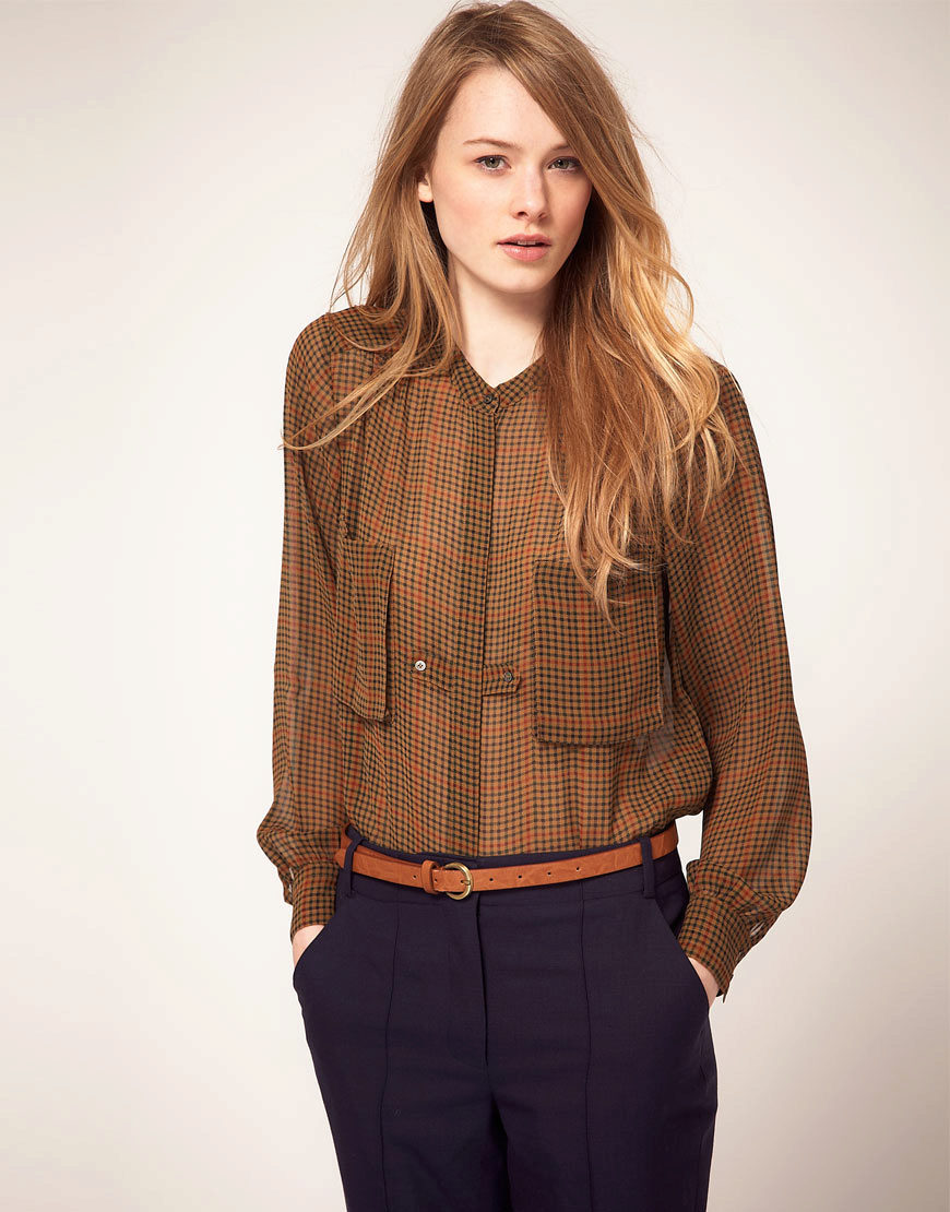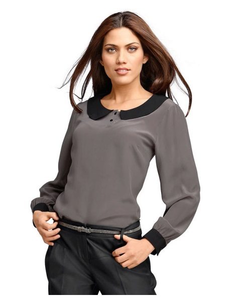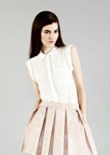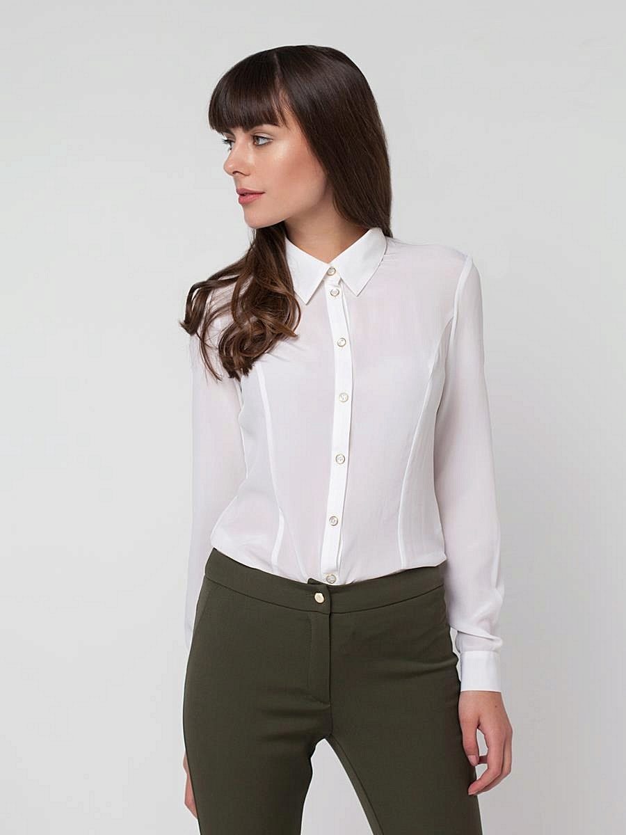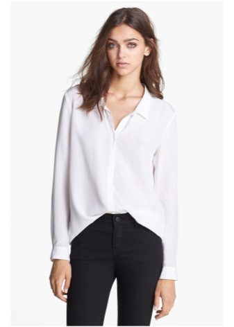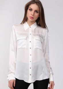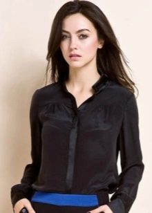 - Business For office workers blouses are made in the style of shirts. They are laconic, combined with strict skirts and trousers. For those who comply with the dress code, but considers it too boring, the designers come up with interesting models with a stand-up collar, sleeves ¾, and hidden buttons.