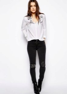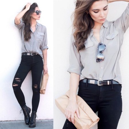 Black blouse is a basic wardrobe item. And if it is out of crack, then every outfit will become elegant and spectacular. Especially black successfully combined with other colors.
