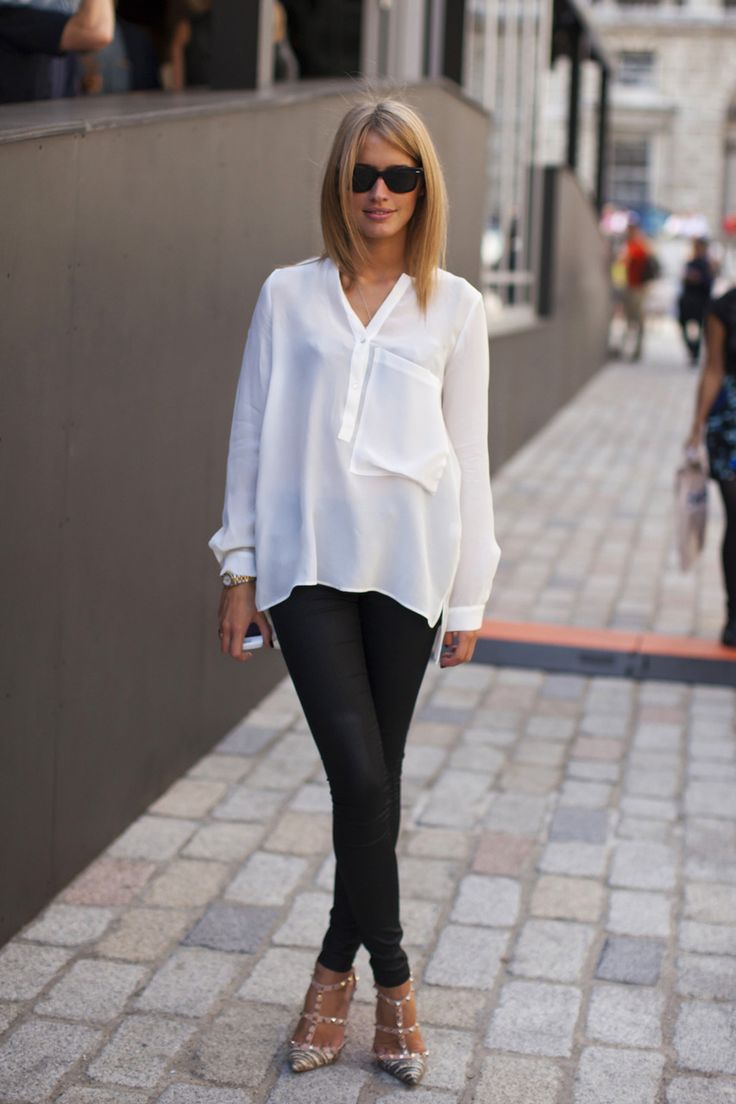 Yin and Yang, white and black are perfect colors for playing with styles. White with jeans creates a relaxed look, simple, but at the same time elegant. There is nothing superfluous, just a laconic cut, the minimum of accessories is a bracelet and a watch, they are quite enough.