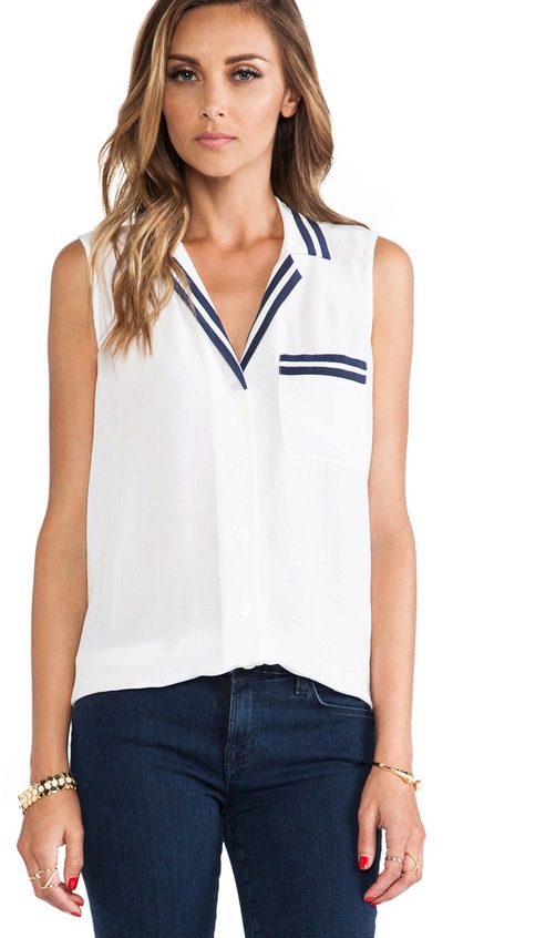 Shorts and a silk sleeveless blouse for a walk are perfect for a summer day.