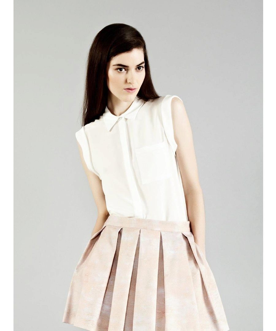 - Under the classic white blouse is selected underwear in tone or skin color;