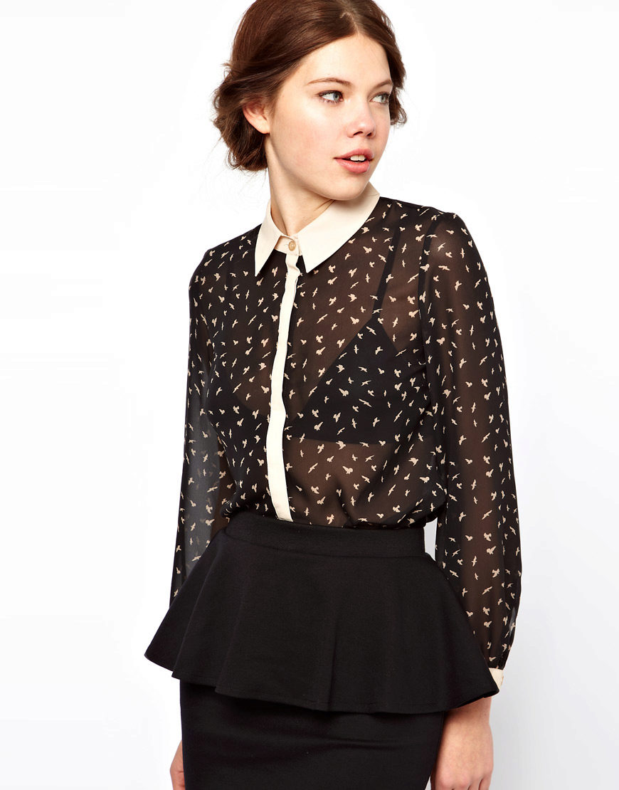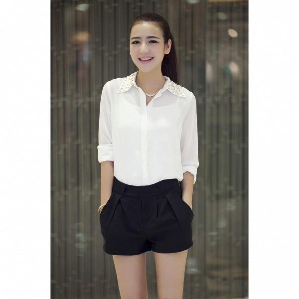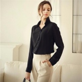 The most popular colors are white and black. A white chiffon shirt is an element of business style. Black - classic and elegance.
