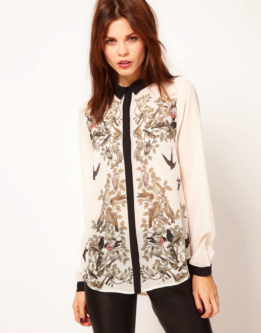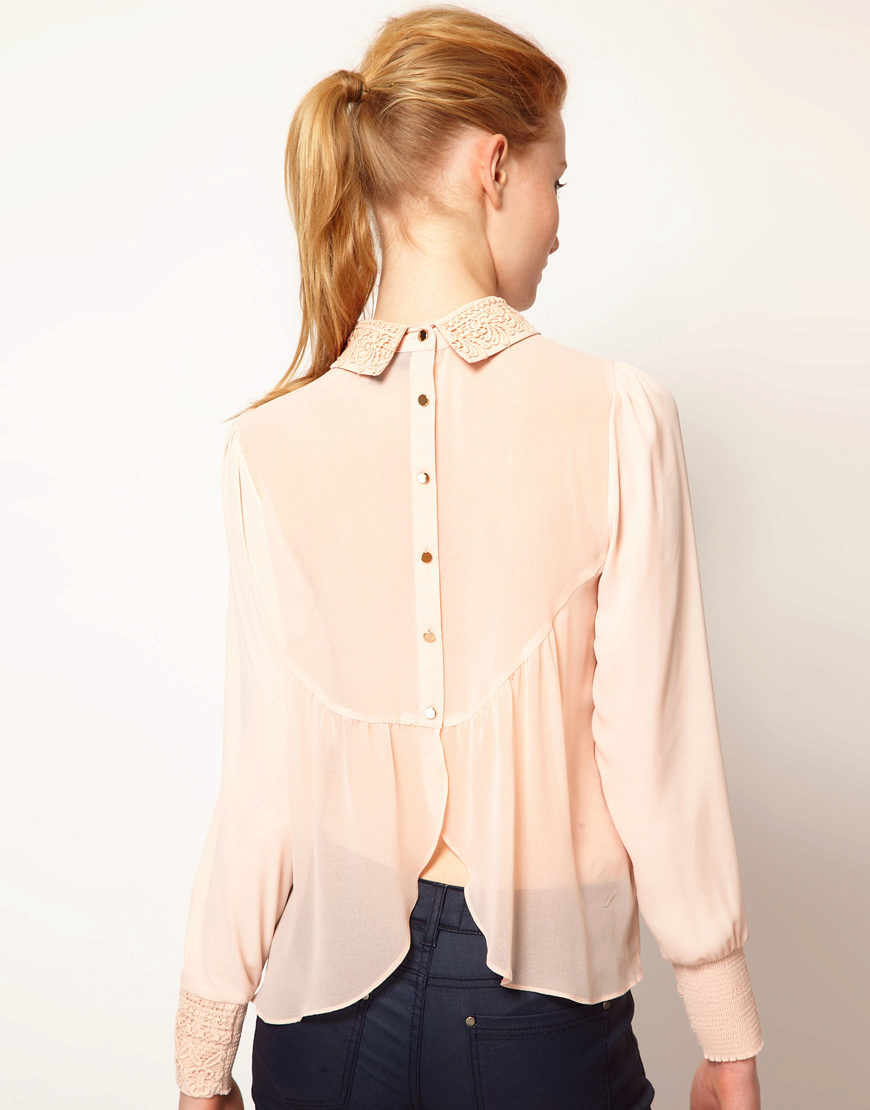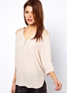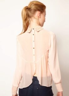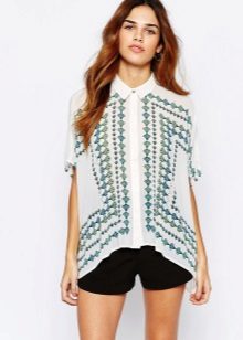 The trends of recent seasons are multilayered chiffon products and a shirt with cuts on the back. Designers regularly come up with decorative elements to decorate models - lace, embroidery, flounces, spectacular buttons, as well as a patch collar.