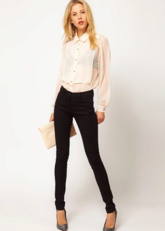 Classic colors look great with pants and skirts of strict style. Pants can be skinny, short version or flared. From the skirts looks original pencil skirt, flared skirts below the knee. Such images will be appropriate in the office.