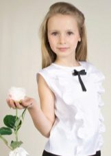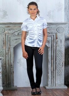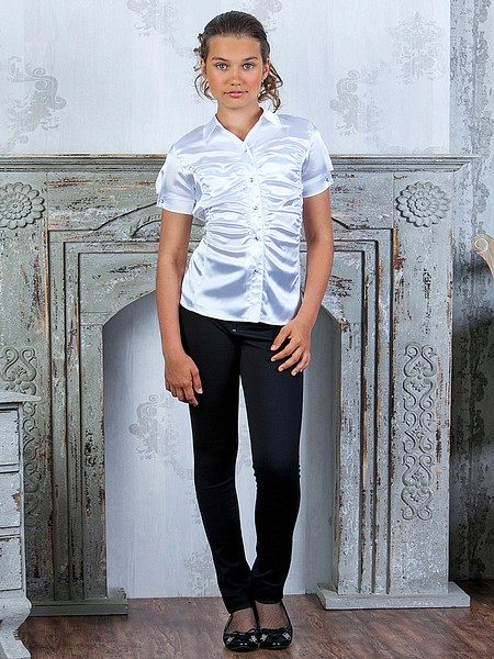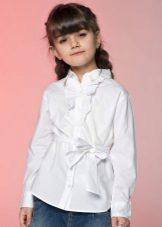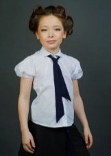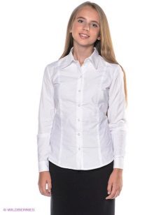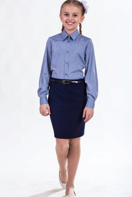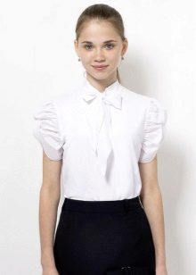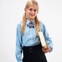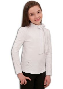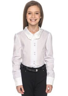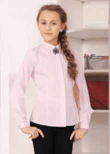 For girls of secondary school age, we can recommend to turn your attention to classic shirts of pastel colors. Such model is ideally combined both with trousers, and with a skirt. A beautiful addition to such a shirt will be a solid tie or a neatly tied bow.