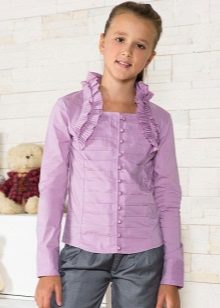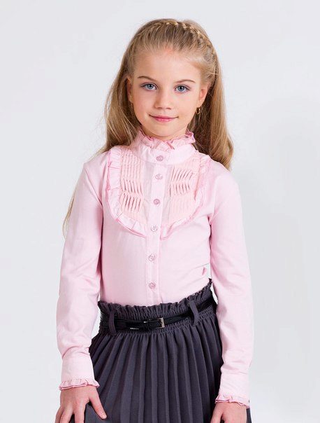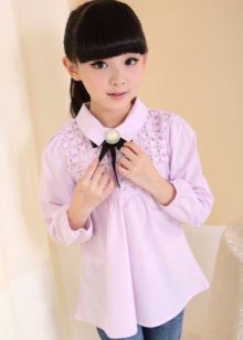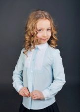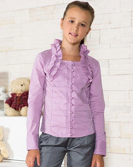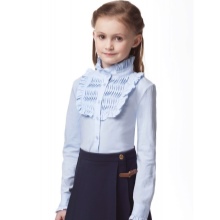 However, the white color, in relation to children's clothing, is not always practical, so when choosing colors for school shirts you should pay attention to the model of pastel colors. Charming look classic and romantic shirts, made in light pink, purple, blue, light green, sandy, gray.