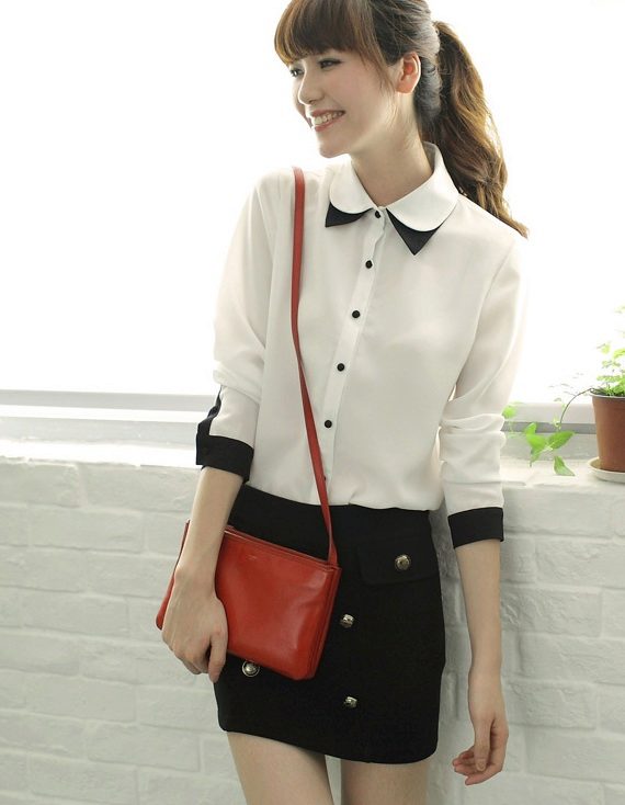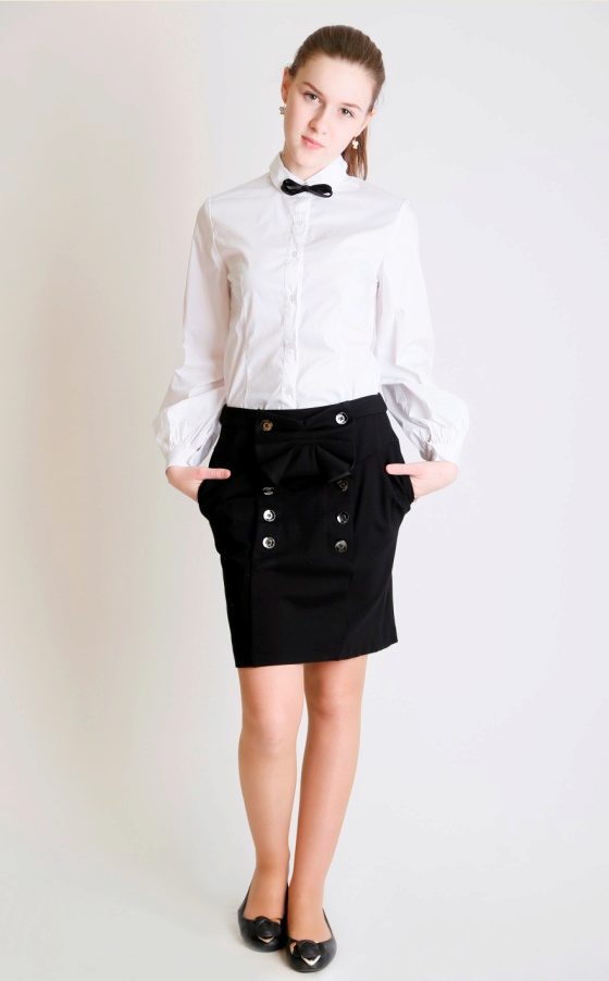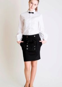 A classic cotton shirt with a pencil skirt looks very modern and stylish. The color scheme may be different, but the classic combination - white top-black bottom is important at any time.