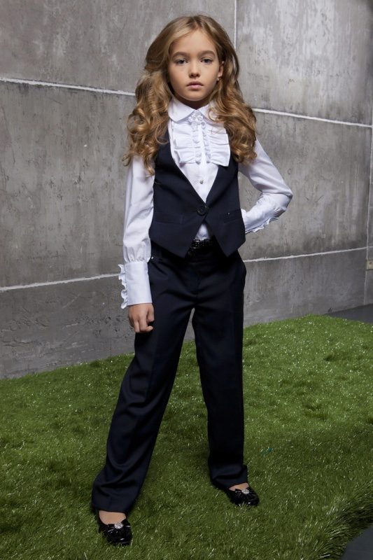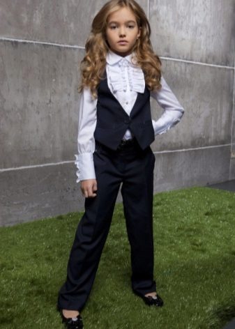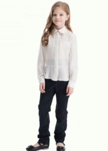 Shirt and pants - one of the most popular and practical sets for schoolgirls of different ages. The shirt can be worn tucked or dressed. As a supplement, a vest or jacket is used to match the pants.