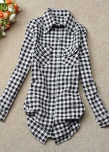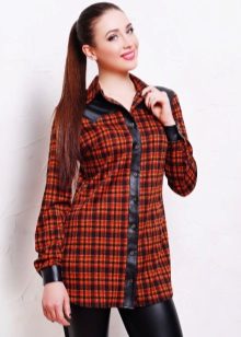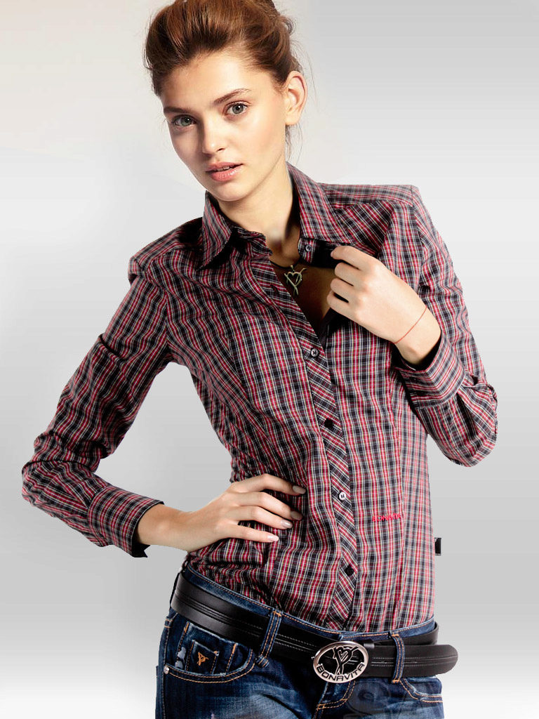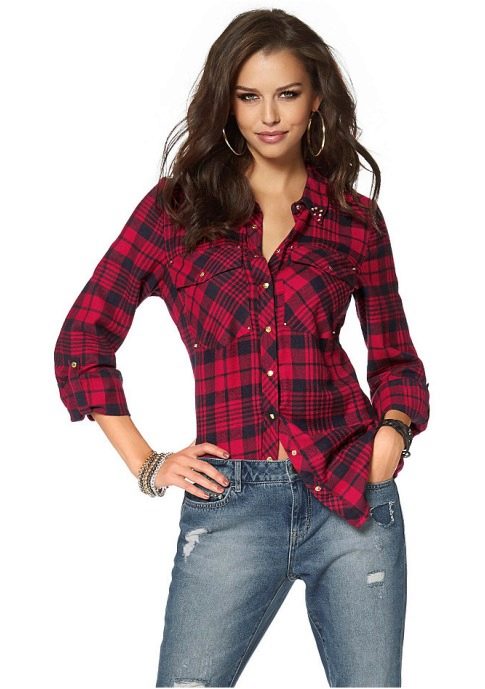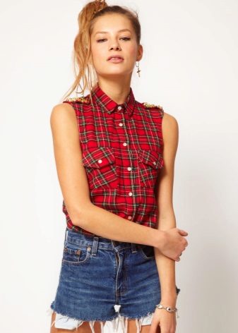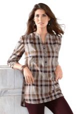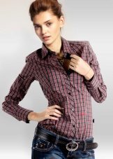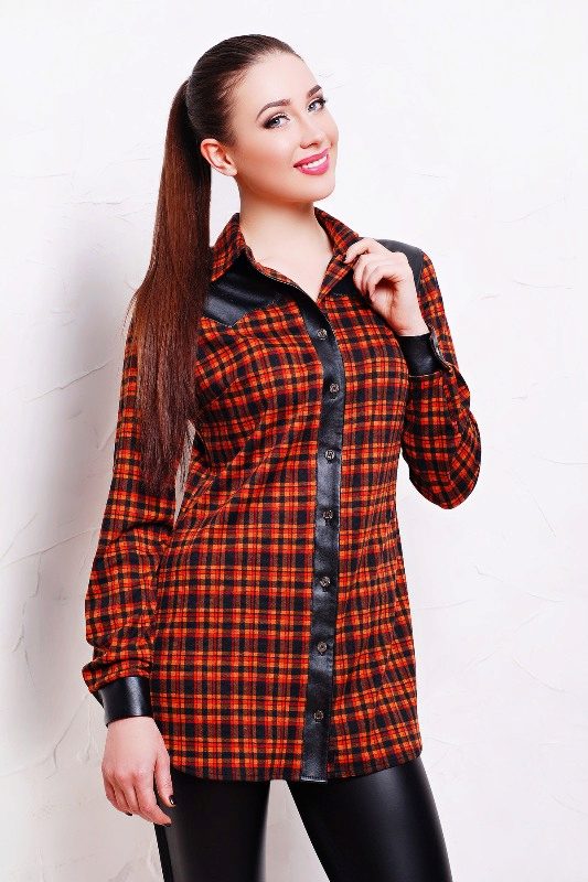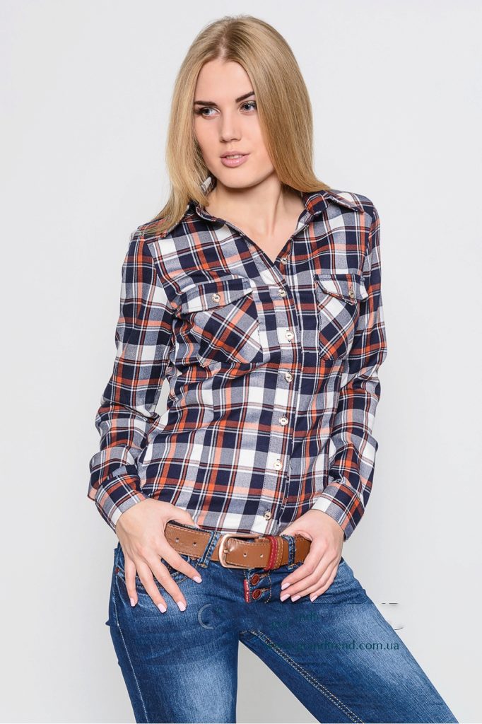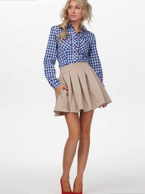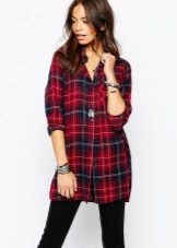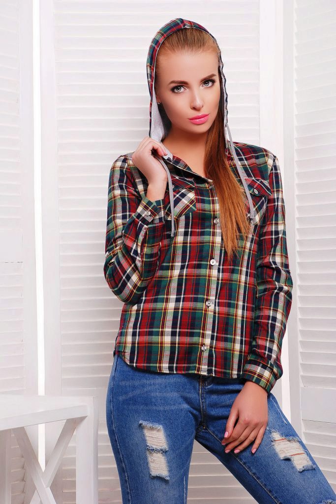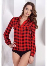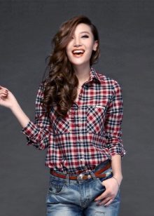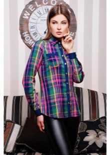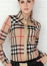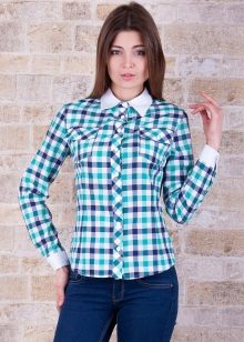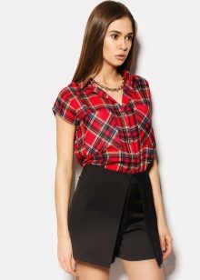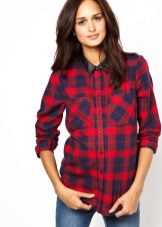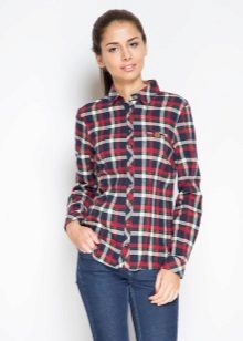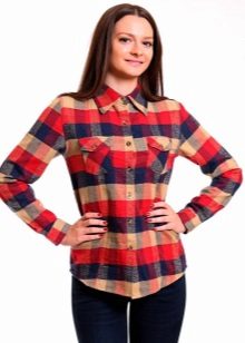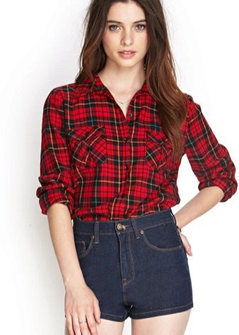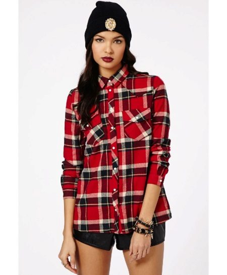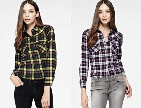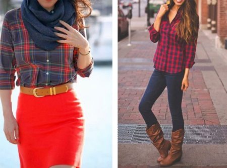 Bright cellular prints look most profitable in the red-green Scottish colors. This shirt model, which has a tight-fitting style, looks great on slender girls.