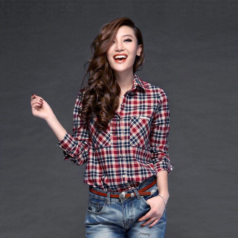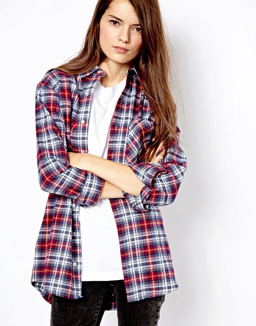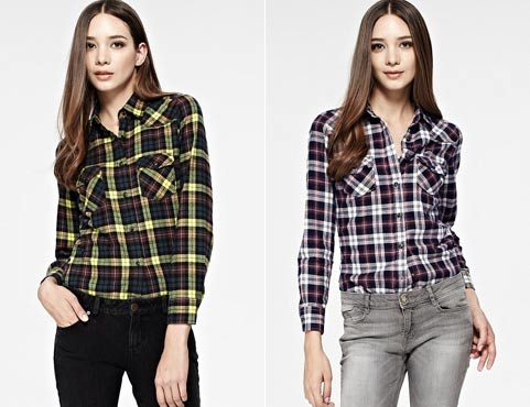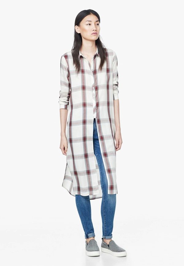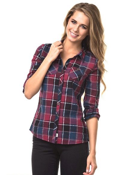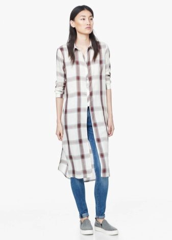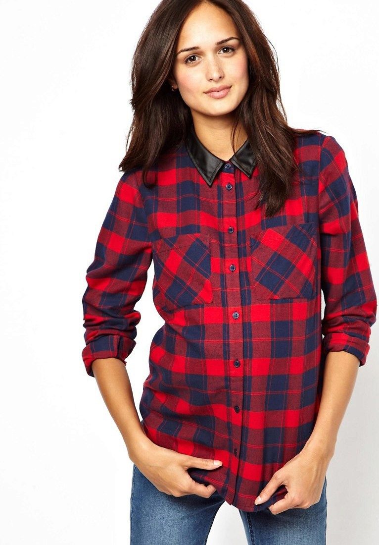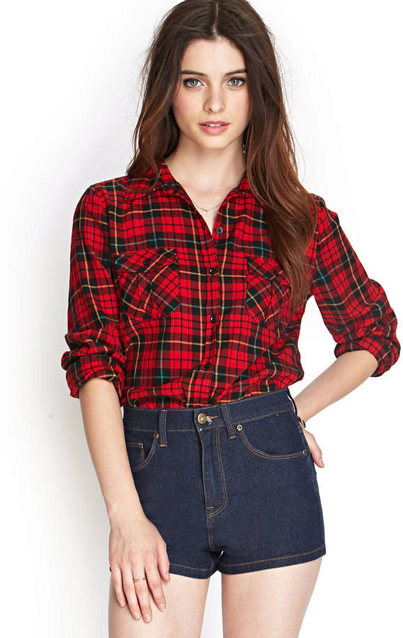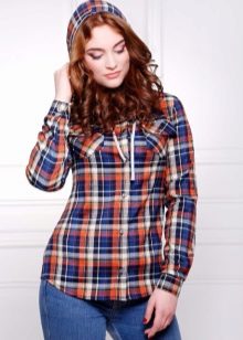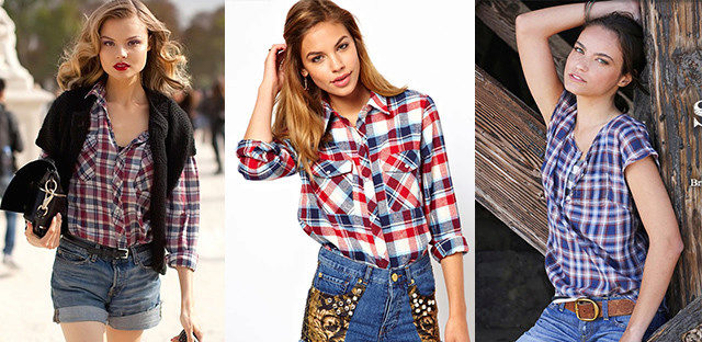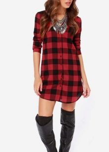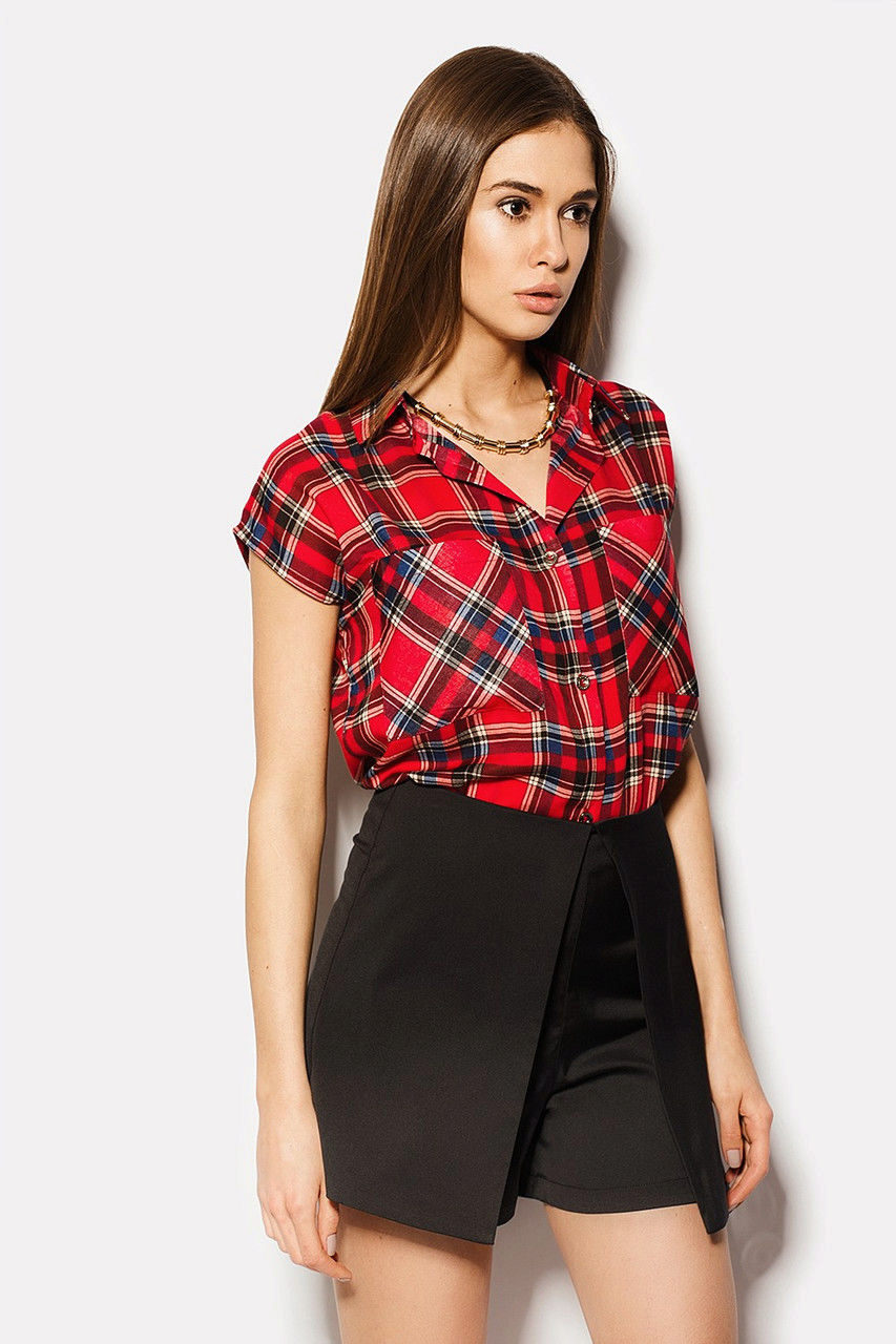 Bright cellular prints look most profitable in the red-green Scottish colors. This shirt model, which has a tight-fitting style, looks great on slender girls.