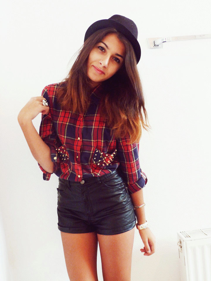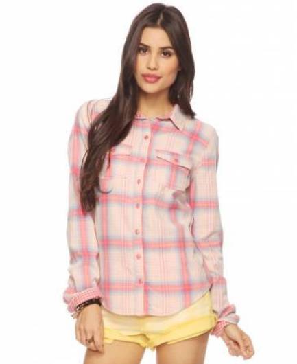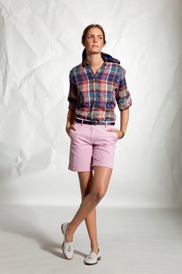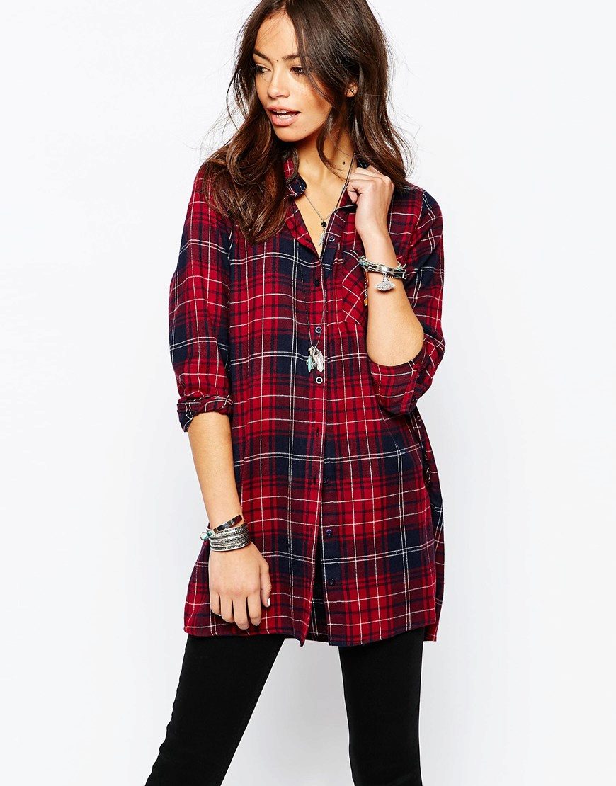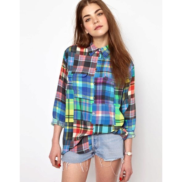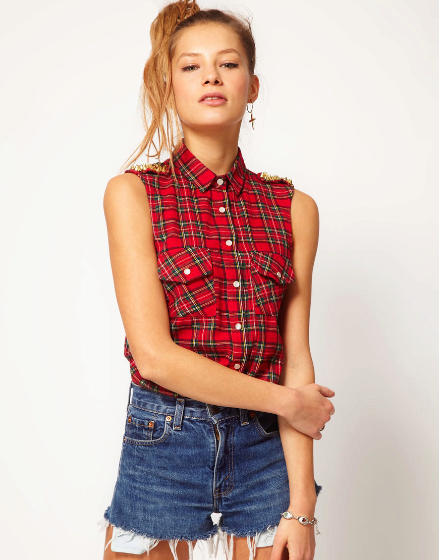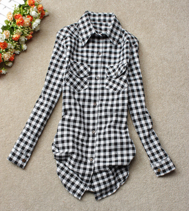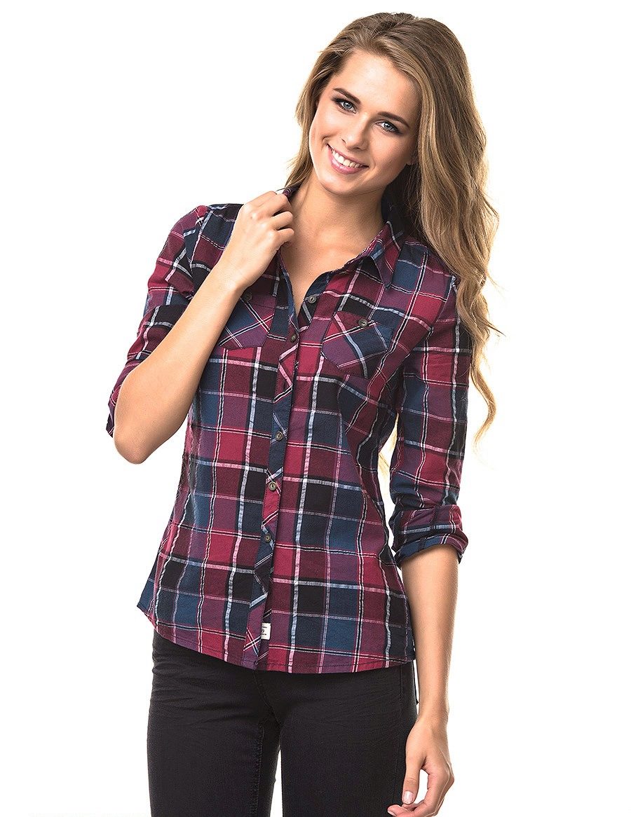 Bright cellular prints look most profitable in the red-green Scottish colors. This shirt model, which has a tight-fitting style, looks great on slender girls.