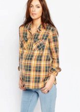 In most cases, pregnant women are recommended to use a special support belt, and under the loose shirt it will not be noticeable.