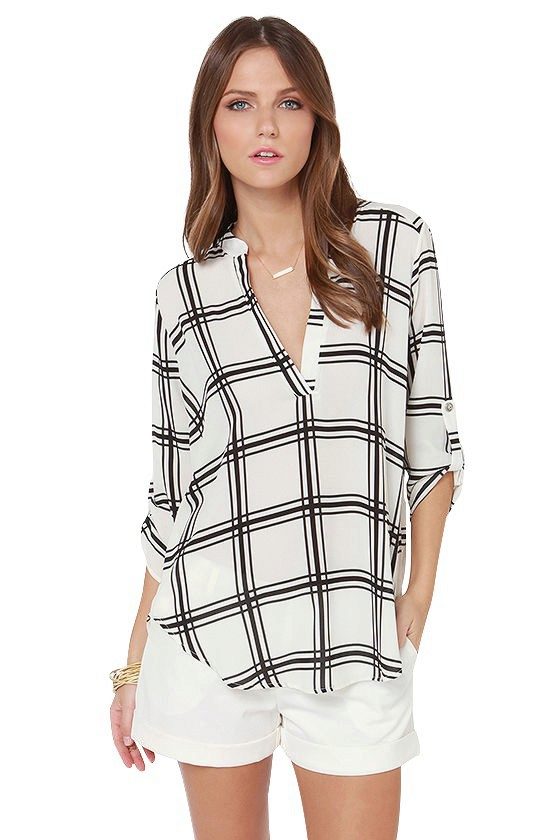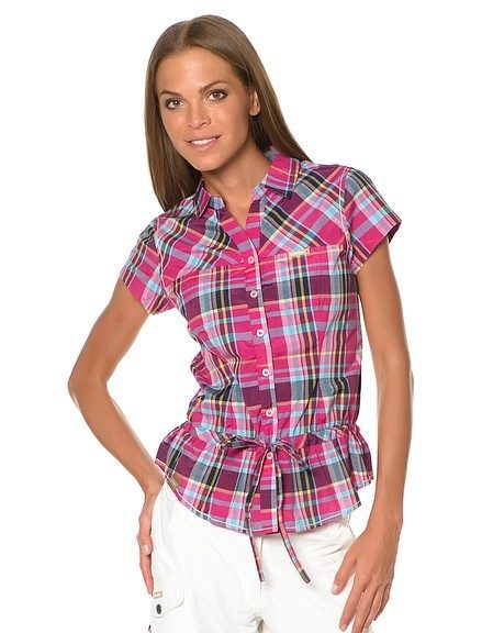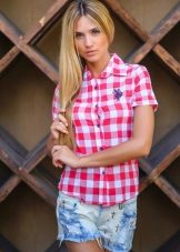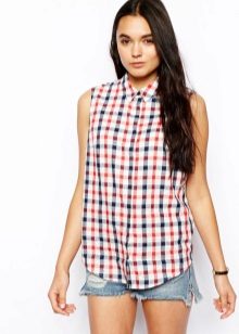 This season, shirts with short sleeves or without them, in a small not bright cage, are popular.