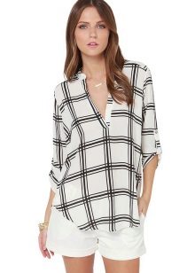 A white shirt, like black, is a classic version and will look good in combination with a cellular print of absolutely any color.