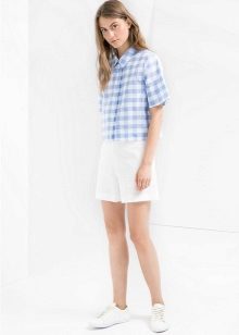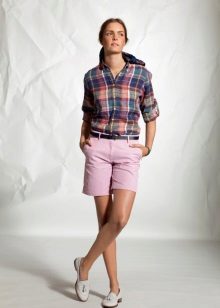 Informal style shorts will be perfectly combined with shirts that have the same stylistic identity. And the shorts of classic models with arrows will be perfectly combined with the models of fitted cotton shirts, as well as shirts - body. It is worth remembering that plaid shirts are best not to combine with shorts in a cage, because such a dress can look pretentious, and will not always be well combined.