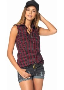 The sleeveless shirt model, depending on the size of the cage, can be part of a business attire in hot weather. In combination with outerwear is well suited to any girl, but as a separate part, it is best to use slender girls with thin hands.