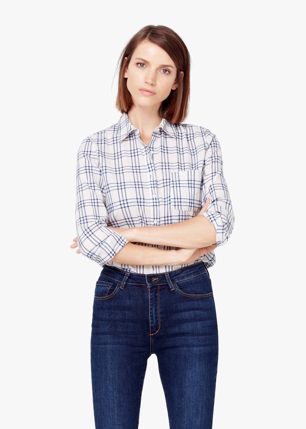 The shirt in blue shades looks very stylish with a print in a vichy cage, as well as a small, discreet cage.
