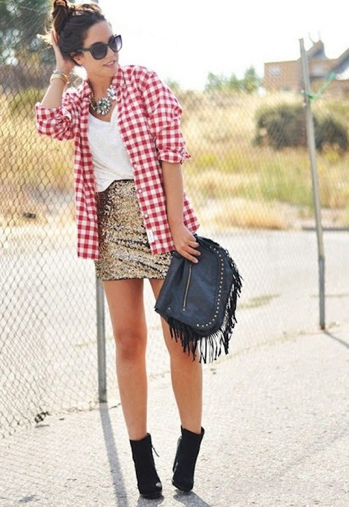 To classic tight skirts fit shirts - body. Denim skirts will look great with flannel shirts or biker models.