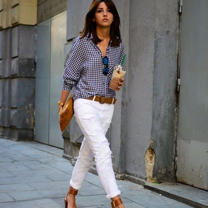 In combination with a jacket fit shirts made of lightweight fabric, for example, cotton or linen. Checkered prints, in this case, can be combined only in this version: the jacket should be dark in color, in a small light cage, and the shirt on the contrary - a light shade with a dark small cell.