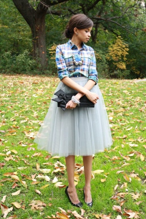 And in a tandem with a fluffy skirt, a plaid shirt will create a spectacular festive bow.
