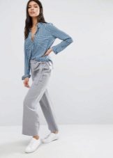 It is best to give preference to narrowed models with a strip of average width. The most courageous girls can wear culottes or pajama pants - trendy things of this season.