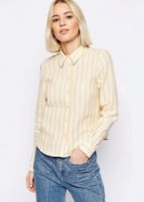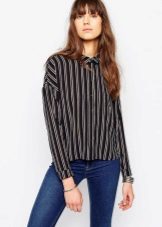 The shirt in a small strip is capable to fit into any clothes, from daily to business. Various outerwear will help make the image more complete and interesting - a casually thrown over jacket, cardigan or jacket.