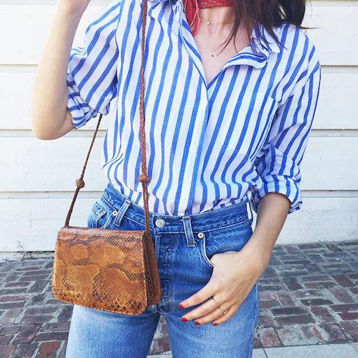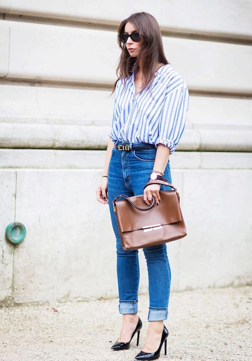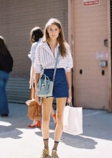 A blue striped shirt deserves a lot of attention from modern fashionistas. Do not look at the fact that for many it is firmly associated only with business images, it can be successfully beaten in interesting street images. Especially with jeans and blinkers from denim, it looks flawless and stylish.