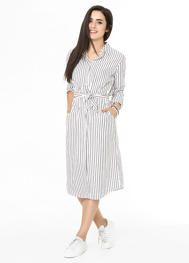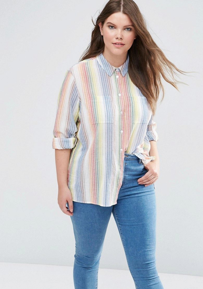 A striped striped shirt adds spice and volume to your body. This effect is especially preferred for thin girls who want to give their silhouette more feminine shape.