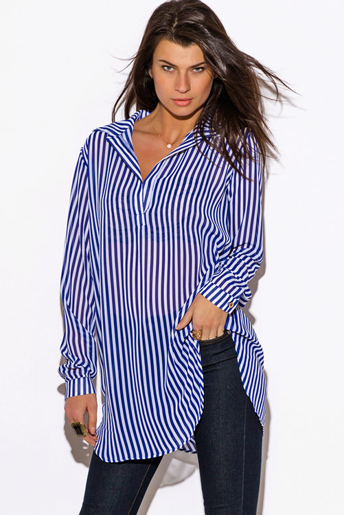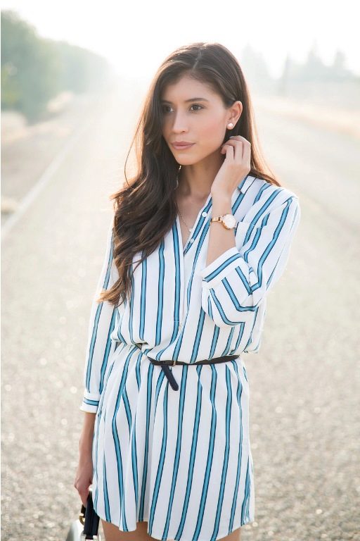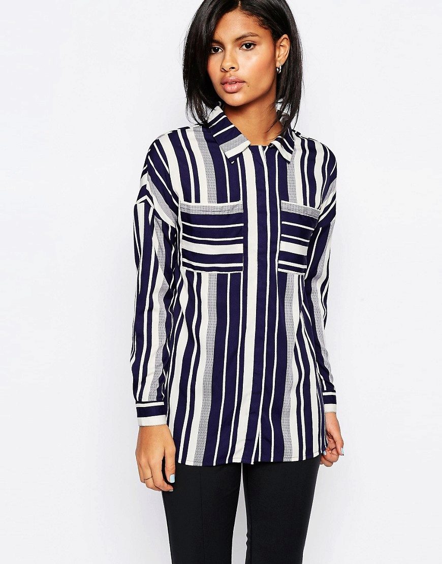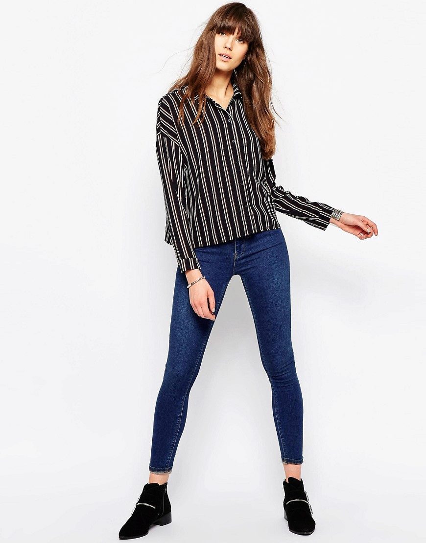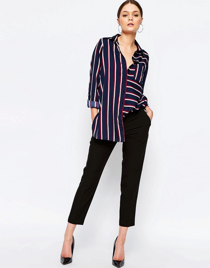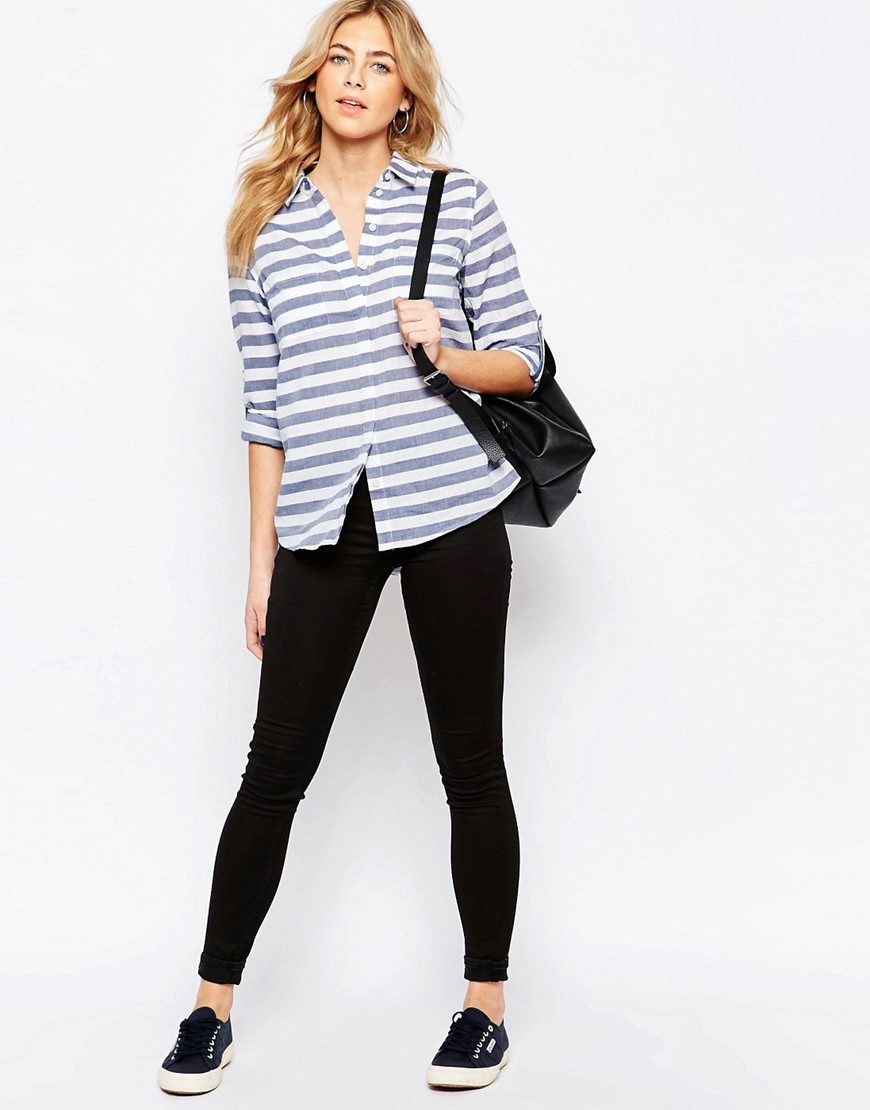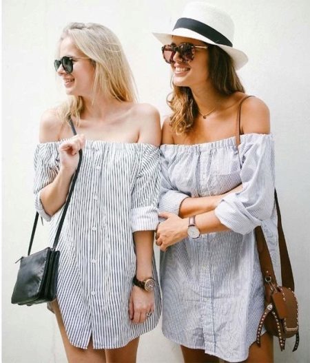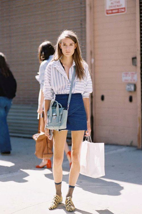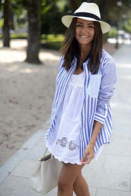 Every day wear it with jeans and an oversize cardigan. Also it will be interesting to look with shorts and skirts. Blue striped shirt is very popular, and is not going to leave fashionable Olympus. Therefore, you can not hesitate to buy a suitable model for you.