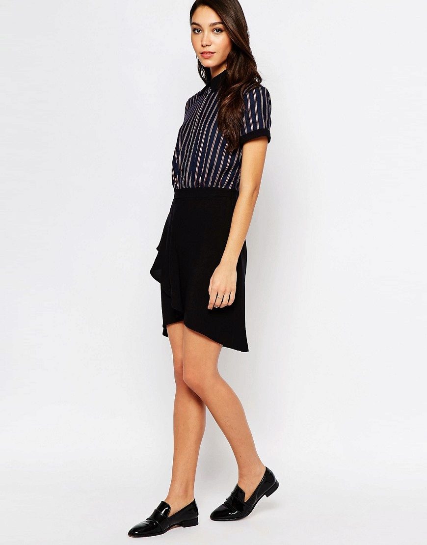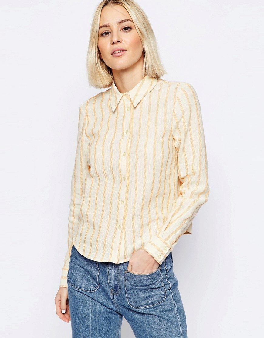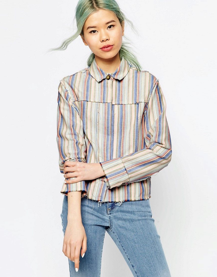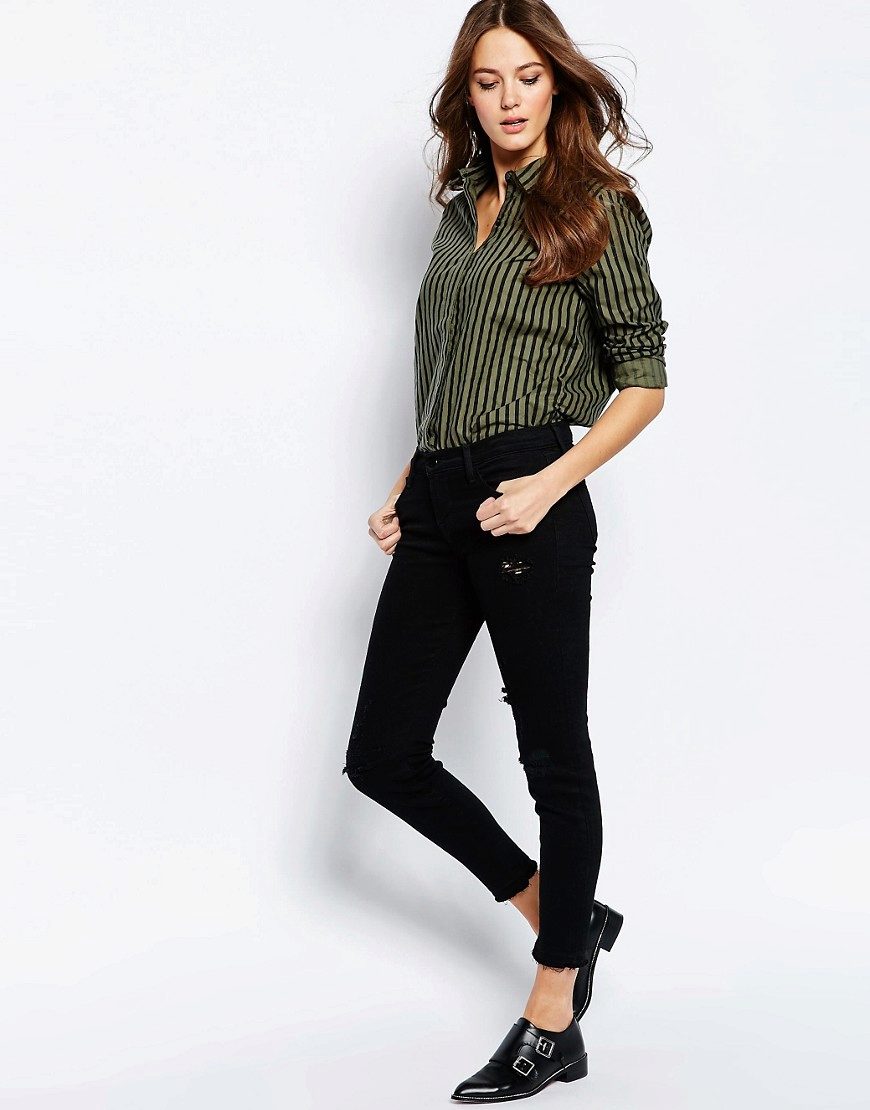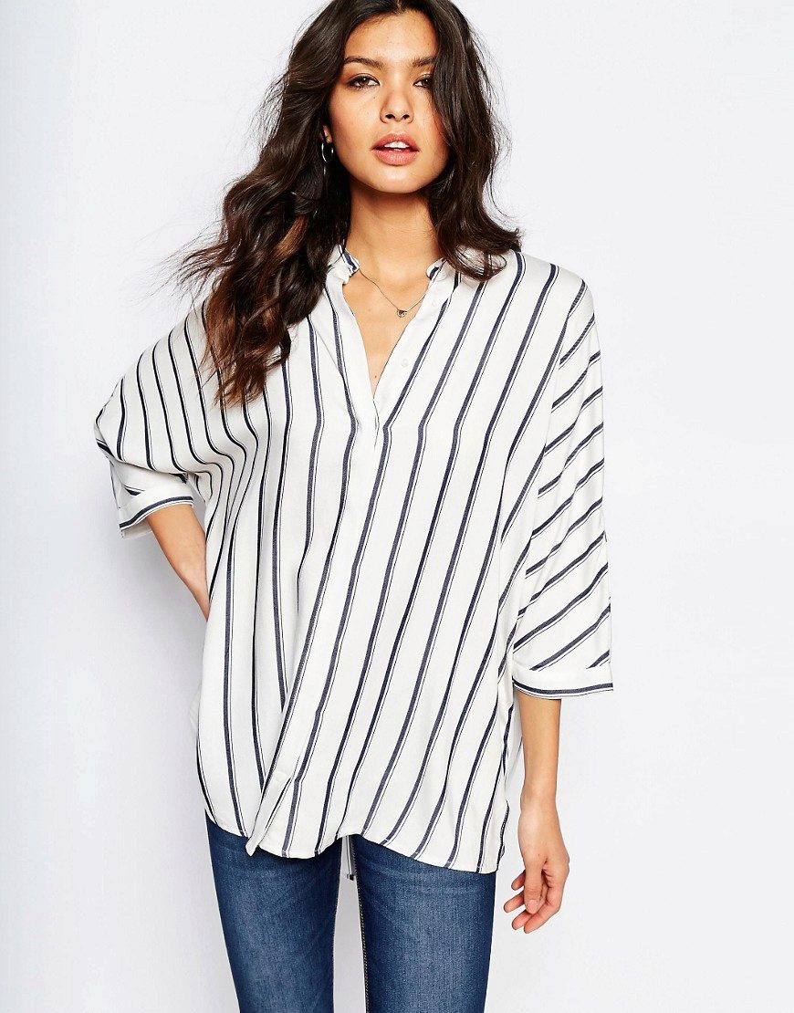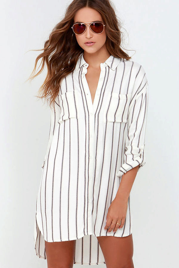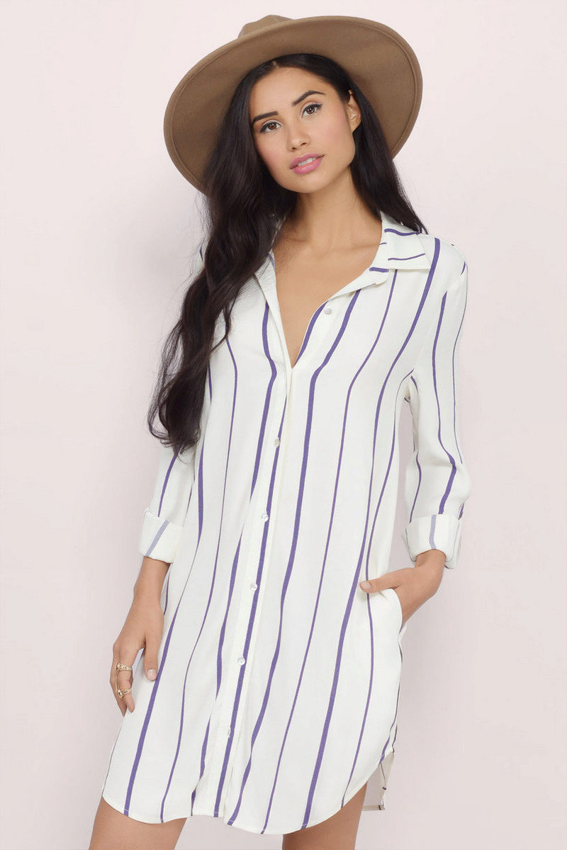 Every day wear it with jeans and an oversize cardigan. Also it will be interesting to look with shorts and skirts. Blue striped shirt is very popular, and is not going to leave fashionable Olympus. Therefore, you can not hesitate to buy a suitable model for you.