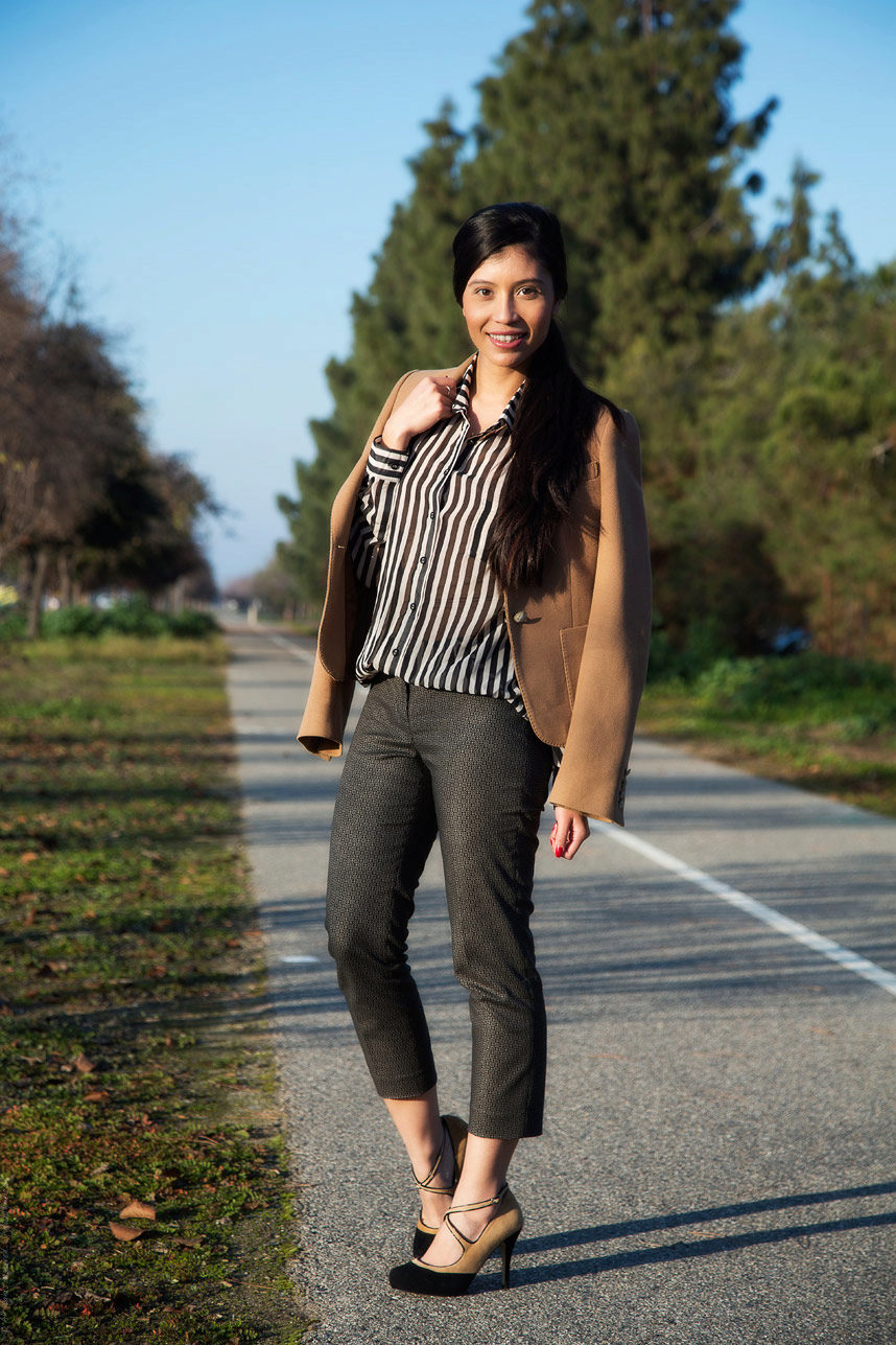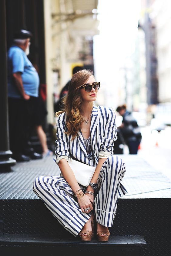 Even if you are wearing a striped shirt of the simplest cut, you can revive the image by wearing it with striped pants!