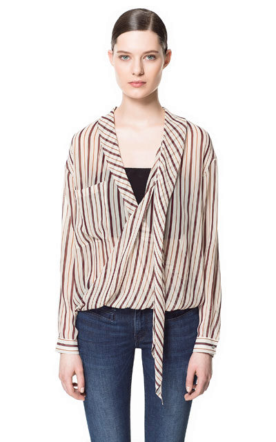 Wrap-around shirts are suitable for girls with any type of figure. They visually intersect the silhouette diagonally, making it feminine and sophisticated.