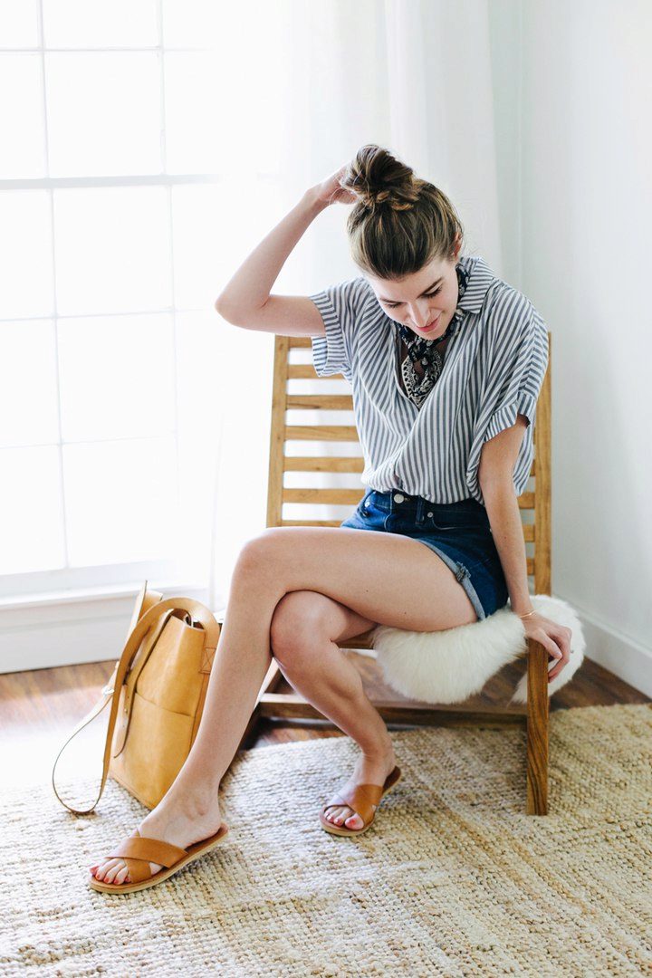 A striped shirt is superbly overworked with stylish shorts. This kit is suitable for a corporate party, a date or a trip to the club. And if you prefer jeans shorts, you can clearly see that this is the perfect summer look for every day. This set looks more interesting shorts with a T-shirt or T-shirt.