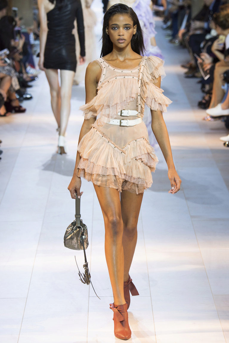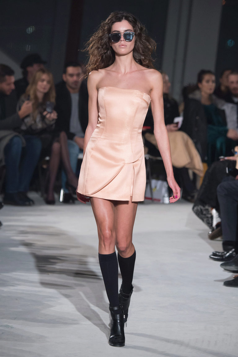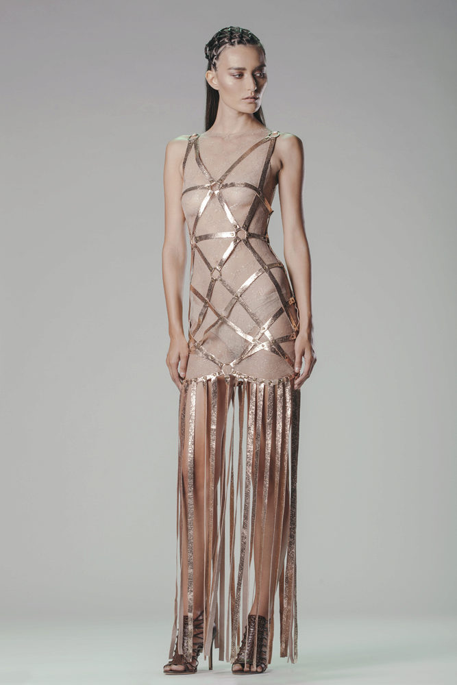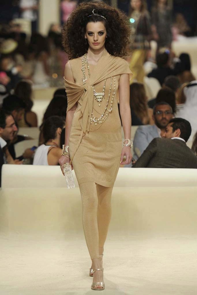 The beige dress, like the color itself, is unusual. It is similar to the color of the skin, so the woman looks almost naked, and it is excitingly sexy.