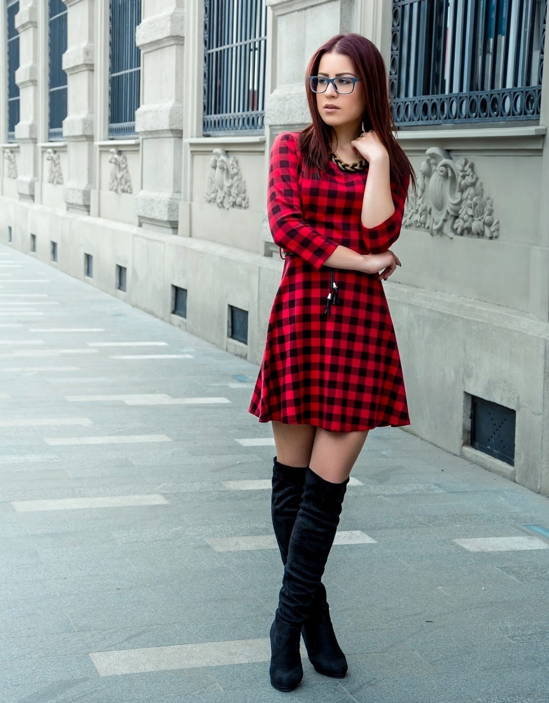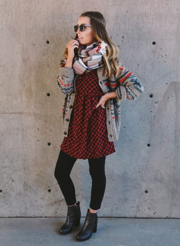 Replacing the studs on lightweight sneakers and throwing a light denim jacket on top, get a great city look for every day. If the street becomes very cool, with a checkered dress, a leather jacket and tight black tights will look great.