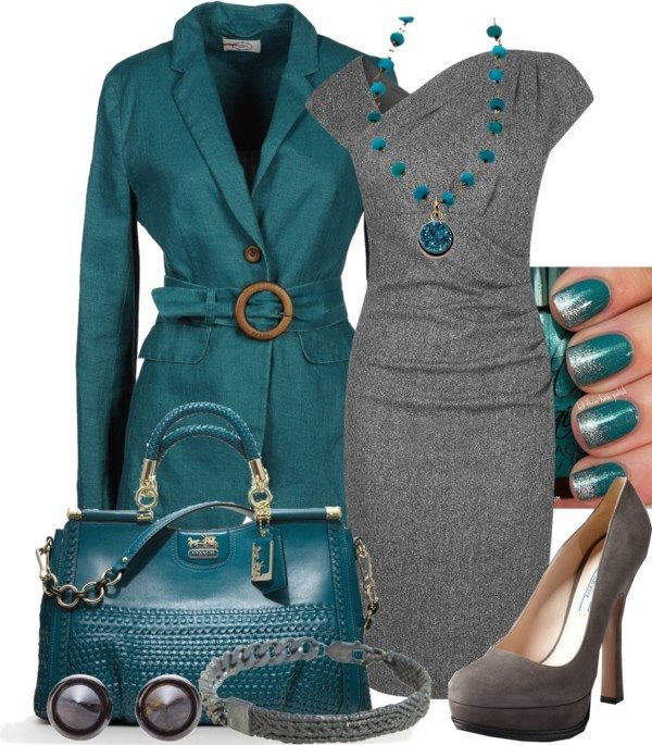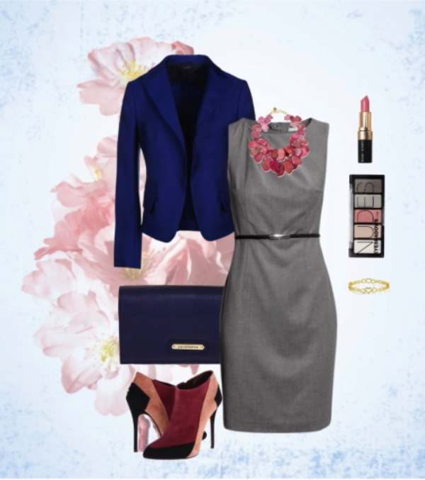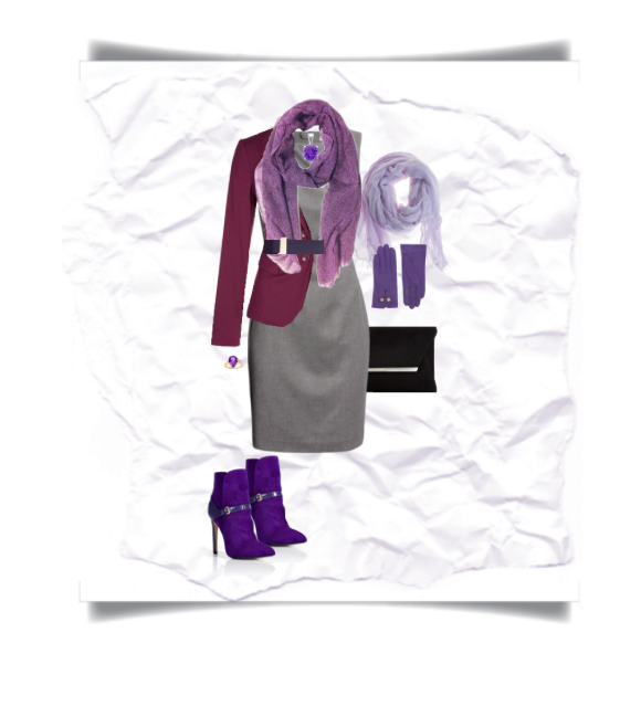 Gray color perfectly harmonizes with accessories, cardigans and a jacket of violet, blue and magenta colors. These shades will create a collected and rigorous image.