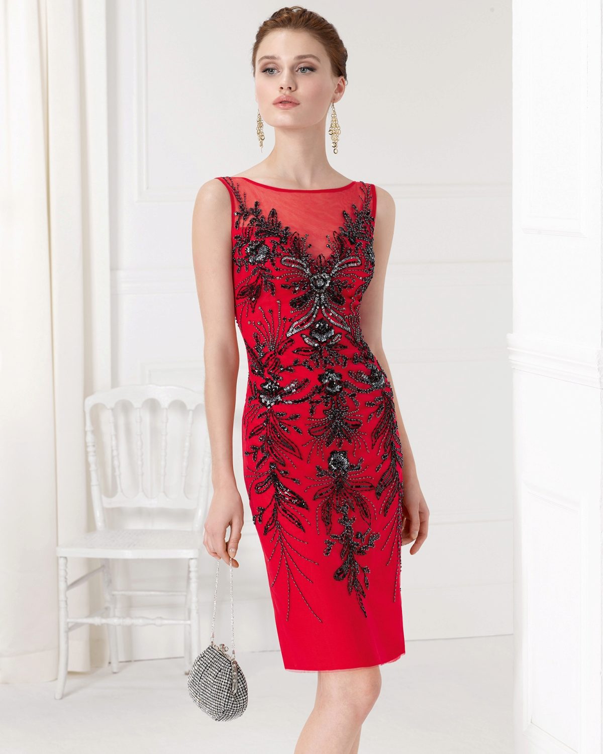 A red sheath dress combines bags with a print. And the choice of shoes depends on the situation.