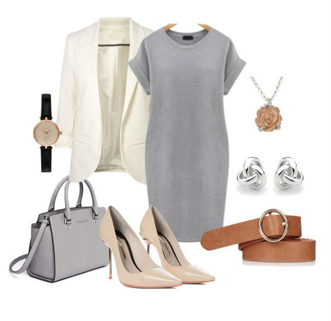 A gray straight dress will sparkle differently if it is supplemented with accessories with the rich colors of sea wave, terracotta, burgundy and, of course, white.