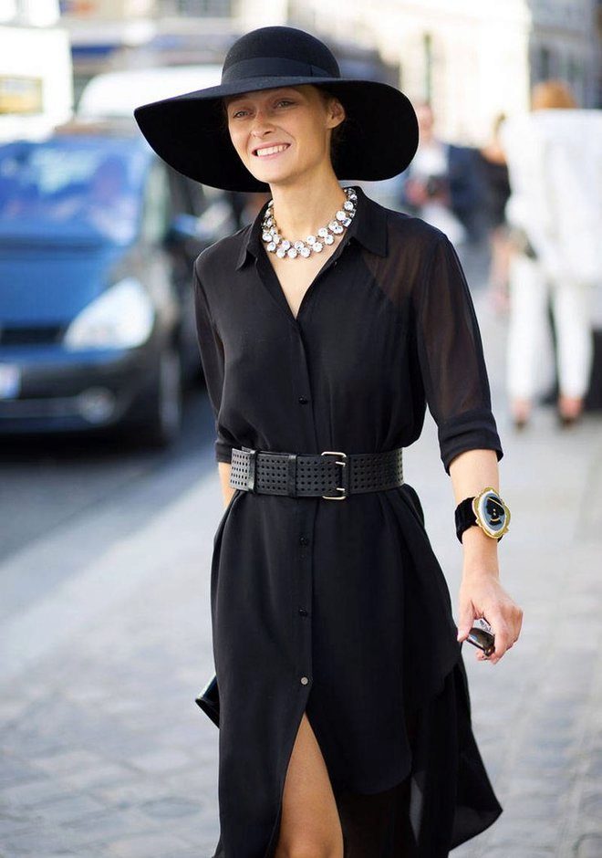 A shirt dress in the floor is the right choice for those who want to look feminine and gentle. For more courageous ladies, a dress made of light fabrics will be a good choice. You can beat him with stylish jewelry and a small handbag.