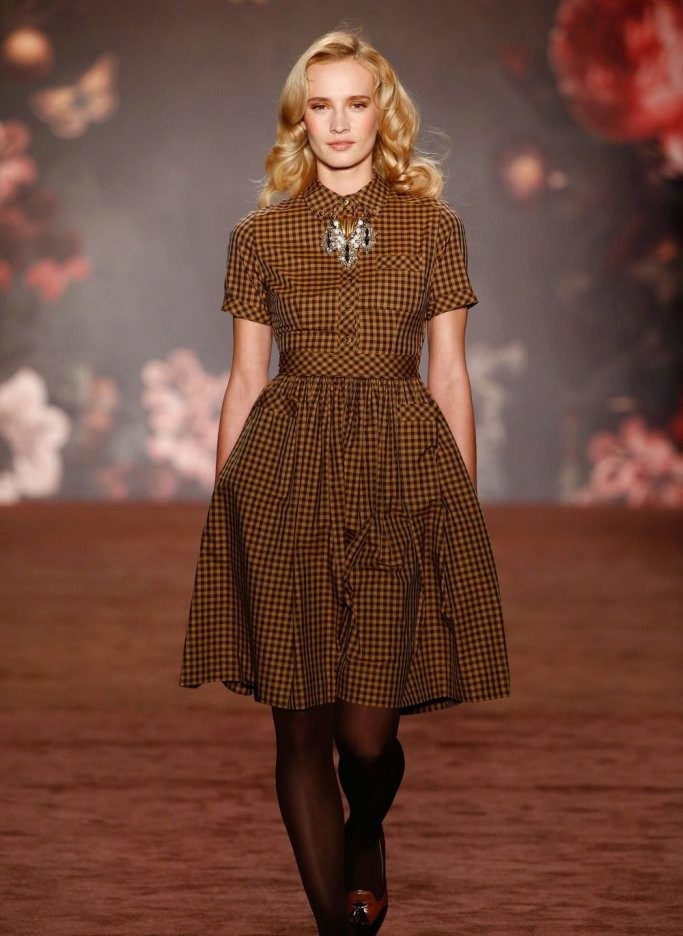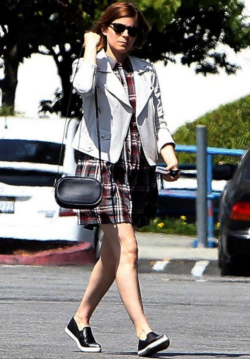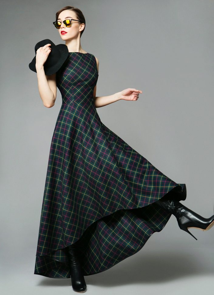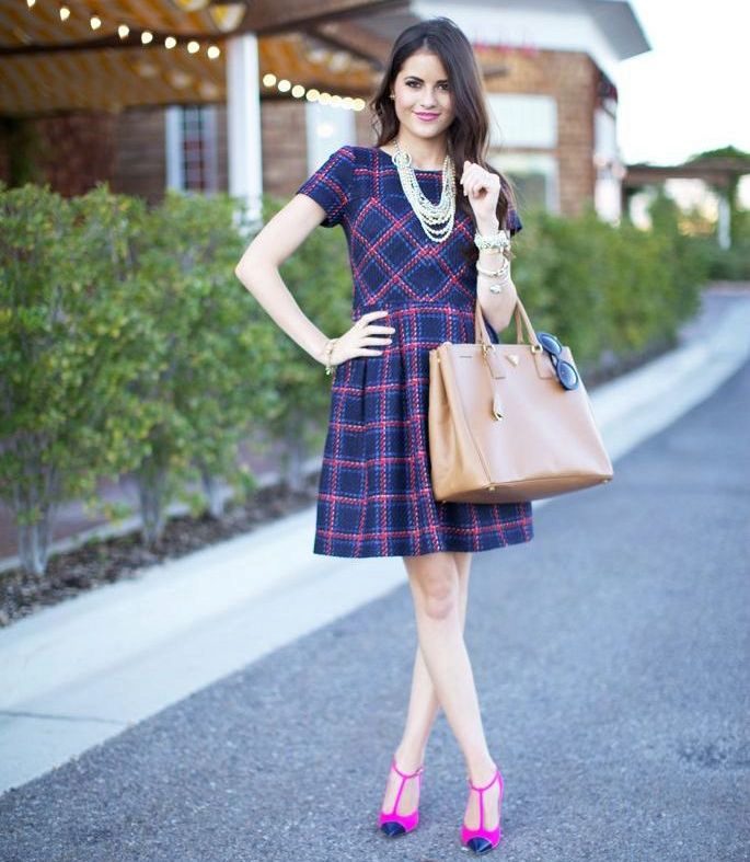 Also with a checkered dress look good rough big shoes or ankle boots, as well as ballet flats.