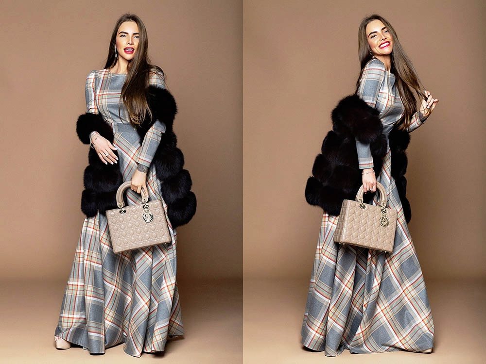 If it is winter outside, we advise you to combine a long dress with a short fur coat and high-heeled boots.